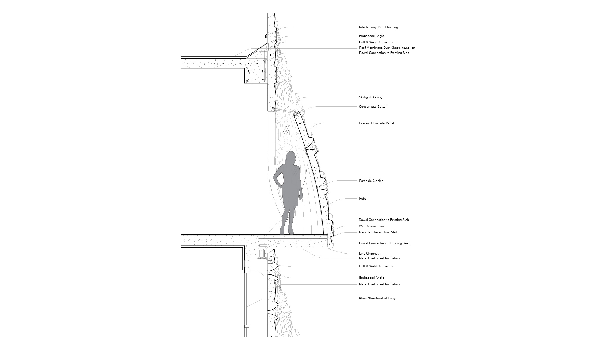 Concrete façades, due to the inherent weight and nature of production, has been defined by two primary methods of fabrication, precast modular units and cast-in-place concrete pouring. Precast modules, while economical, lack the ability to create unique moments within a field while cast-in-place solutions can achieve this, but only through specialized formwork that is cost prohibitive. This project aims to achieve formal variety while incorporating economic constraints. This desire was met by marrying repetitive precast molds and cast in place formwork of fabric.