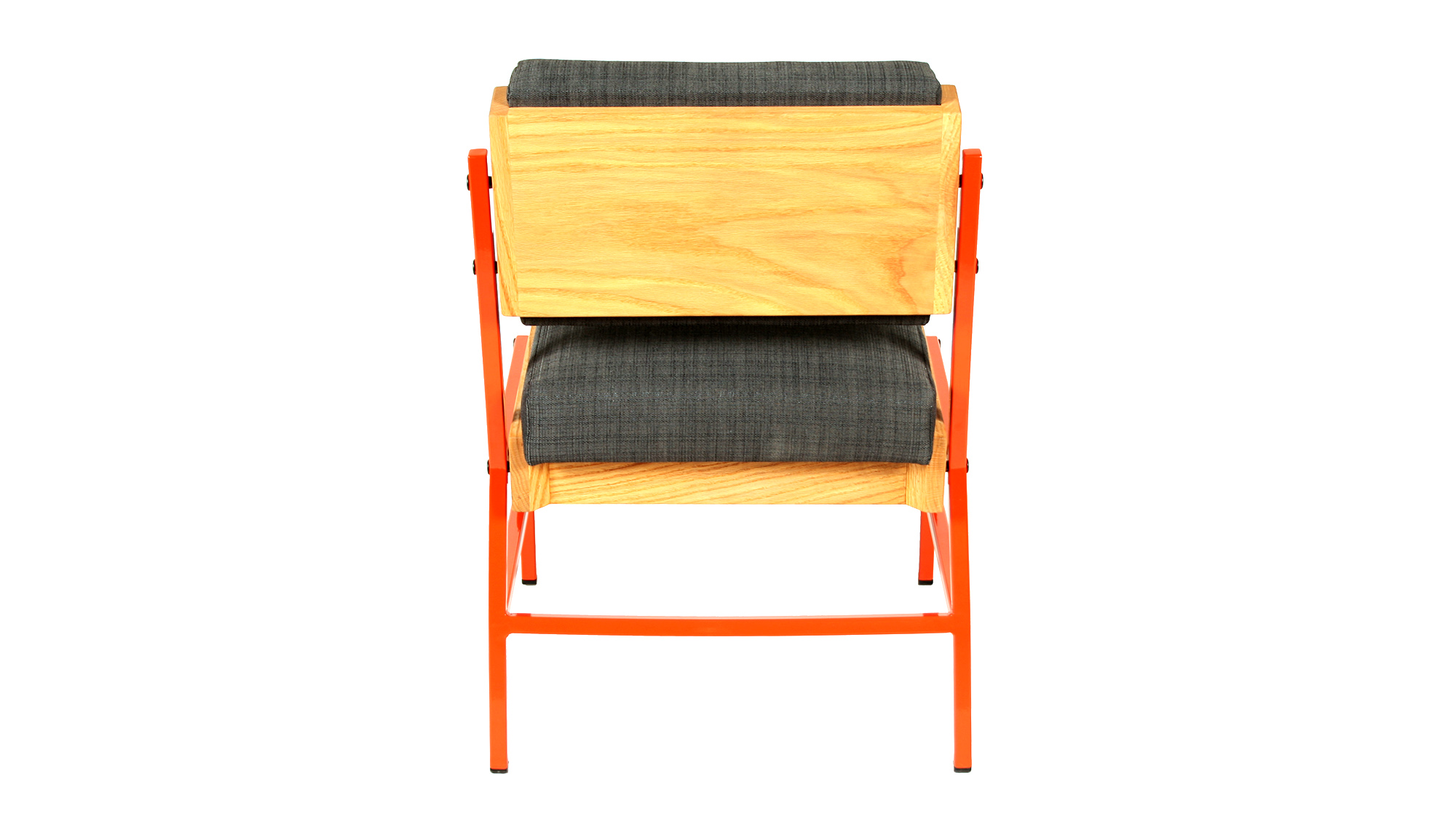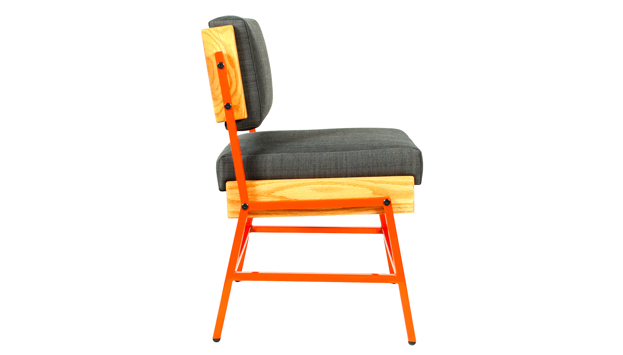 The WW Chair is inspired by the woods and steel aesthetics of citrus packing houses. The white oak seat and back pans, with their champfered recesses, draw upon the construction language of fruit crates. A powder coated steel frame exposes and celebrates the structural system. Generous cushioning makes the WW Chair comfortable for serious stints of work or lounging. A versitile addition to any industrial, mid-century, or contemporary space and a companion piece to the WW Stool.