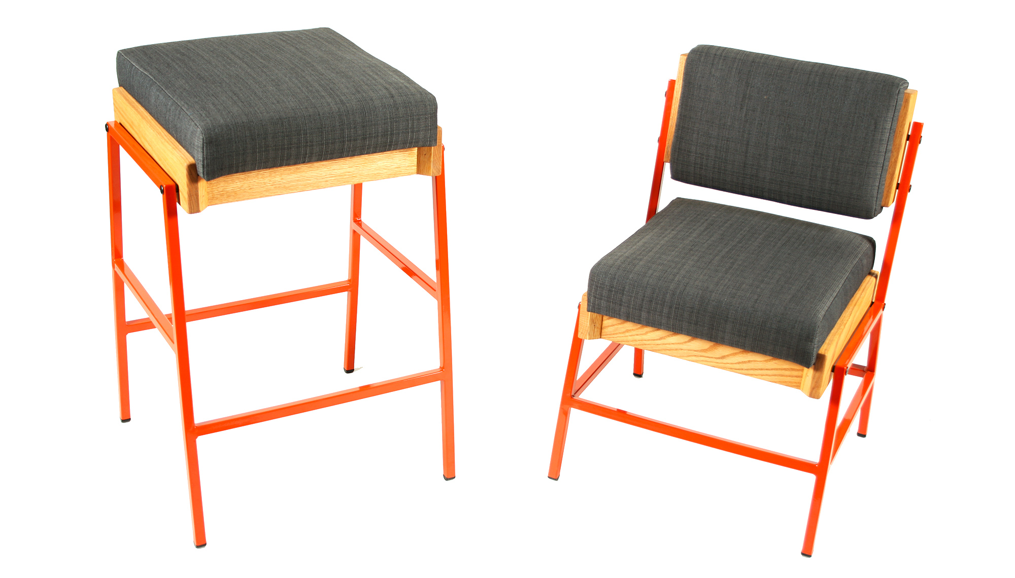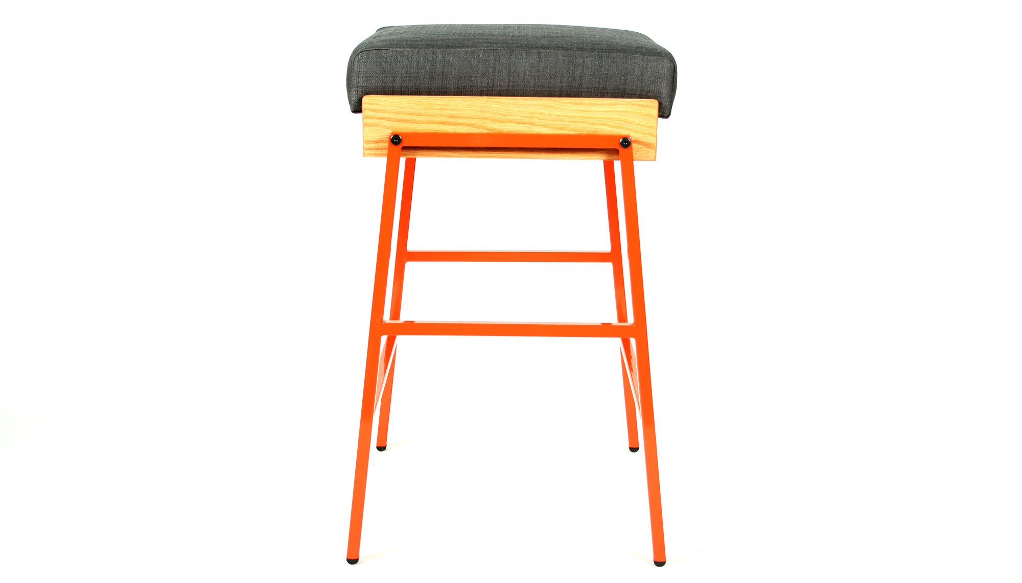 The WW Stool is inspired by the woods and steel aesthetics of citrus packing houses. The White Oak seat pan, with it's champfered recesses, draws upon the construction language of fruit crates. A powder coated steel frame exposes and celebrates the structural system. Generous cushioning makes the WW Stool comfortable for serious stints of lounging. A versitile addition to any industrial, mid-century, or contemporary space and a strong companion piece to the WW Chair.